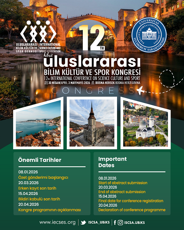 The International Science, Culture and Sports Congress (iscs-conference.org), which we have organized since 2012 with the support of domestic and foreign academics and hosted by different universities, both at home and abroad. The ninth will be held in BOSNIA HERZEGOVINA, between April 30, May 3 2026, with the participation and support of you, our valuable academicians, with ONLINE and FACE-TO-FACE options.
